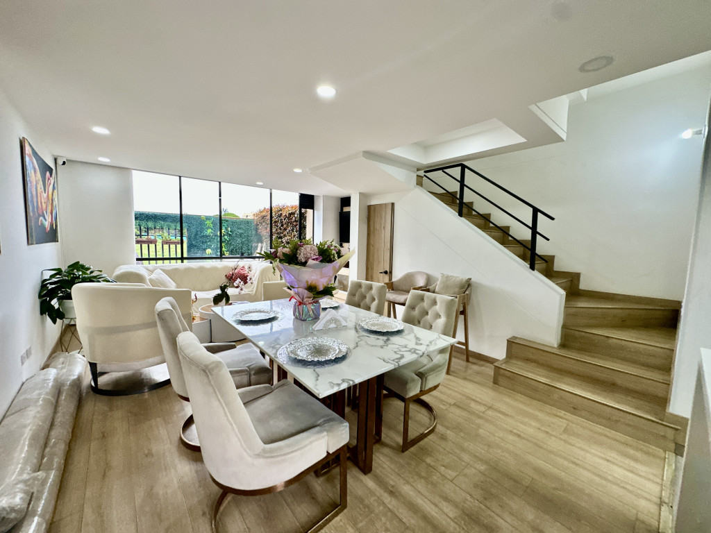 Vendo Hermosa Casa Moderna En Chía, Ubicada En Exclusivo Conjunto Cerrado, Que Se Destaca Por Su Amplia Zona Verde Privada Y Su Diseño Contemporáneo De Tres Niveles. En El Primer Nivel Ofrece Una Cocina Moderna Tipo Americano, Sala Y Comedor Independientes Con Puerta Ventana Y Salida Directa A La Zona Verde, Creando Un Ambiente Ideal Para Disfrutar La Luz Natural Y El Exteri...