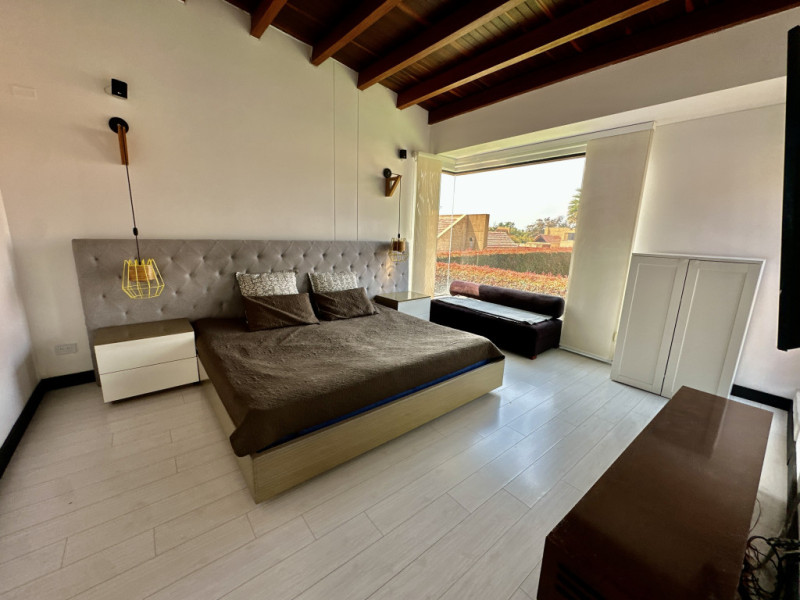 Arriendo en Cajicá exclusiva casa de lujo ubicada en un prestigioso condominio residencial con completo club house, esquinera, con lote independiente y rodeada de zona verde que garantiza total privacidad sin casas adosadas; distribuida en dos niveles, ofrece una amplia cocina tipo americano, grandes ventanales que brindan excelente iluminación natural, terrazas, pérgolas y zona BBQ ideales para disfrutar, además cuenta con 4 habitaciones cada una con baño, habitación de servicio, estudio, estar de TV y balcones en todos sus espacios, complementado con senderos peatonales y amplias vías que hacen de esta propiedad una opción perfecta para vivir con confort, exclusividad y tranquilidad.