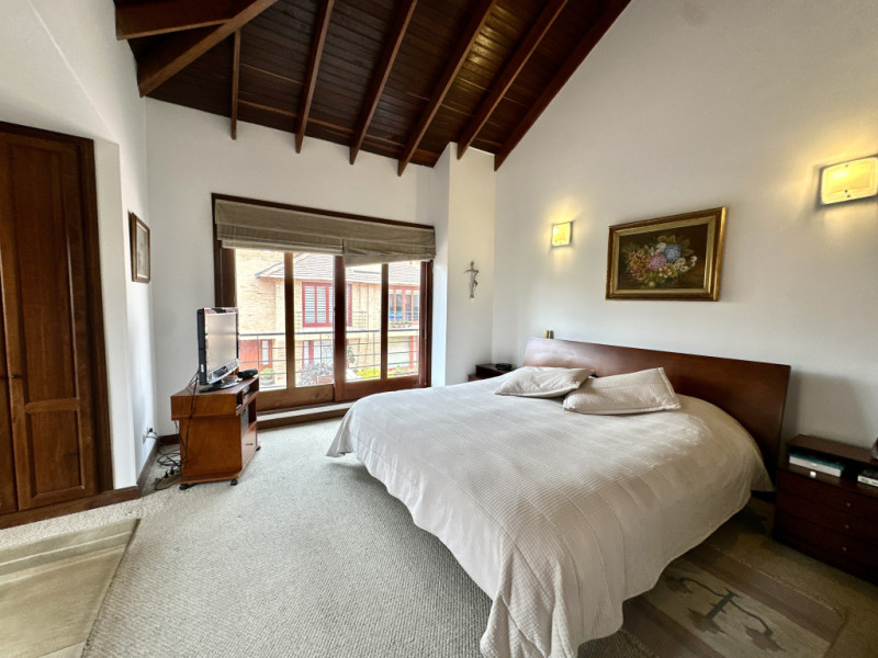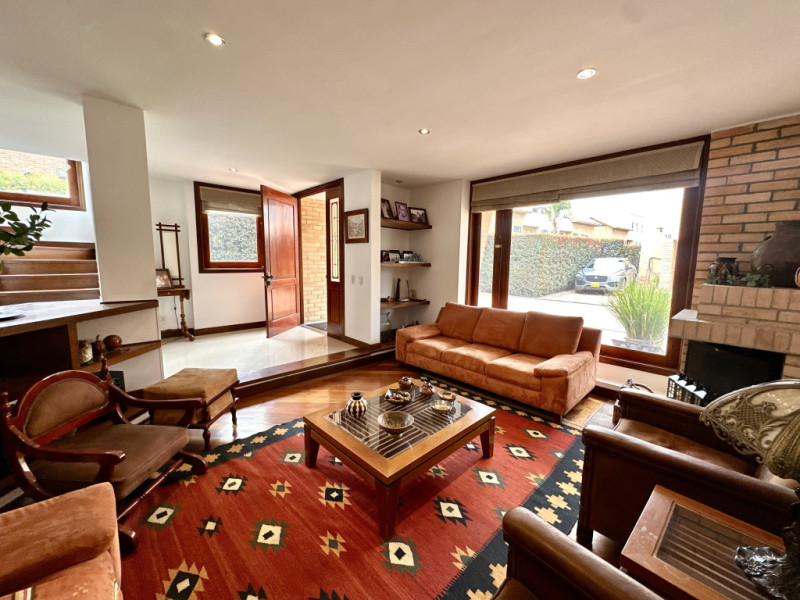Vendo espectacular casa en Chía, ubicada en exclusivo conjunto con club house, distribuida en tres niveles con espacios amplios y luminosos que resaltan por su elegancia y excelentes acabados en madera maciza y porcelanato. Cuenta con una amplia sala y comedor independientes, chimenea en la sala y también en la habitación principal, estudio, moderna cocina con isla central y torre de hornos, y un gran altillo multifuncional. Dispone de 4 cómodas habitaciones más habitación de servicio, todas con excelentes closets y generosos espacios. La propiedad ofrece además un lote privado con amplia zona verde lateral y posterior, ideal para disfrutar al aire libre y reuniones en su zona de BBQ, así como parqueadero para cinco vehículos. Una vivienda que combina amplitud, estilo y confort en un entorno privilegiado para vivir en Chía.