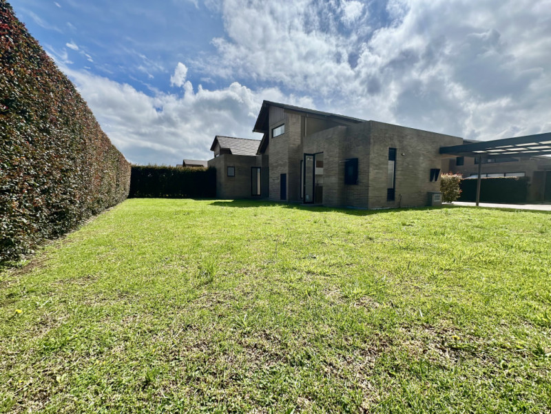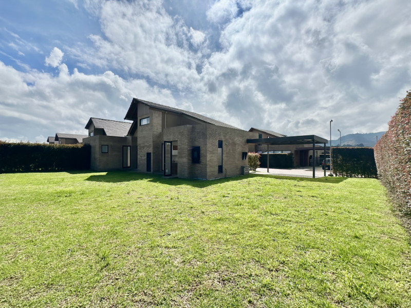 Vendo hermosa vivienda con diseño exclusivo, casa de un solo piso, en este conjunto residencial te ofrezco una casa de un piso con altillo en lote de 466metros . Vivienda premium en conjunto condominio club con amplias zonas sociales, interiores luminosos de grandes ventanas y acabados de alta calidad que hacen de este condominio la materialización de un sueño en la Sabana de Bogotá. En el 1° piso tiene 3 alcobas la principal con walk in closet y baño sala con techos altos comedor cocina zona de ropas estudio, baño social 2 alcobas en primer nivel y una en segundo nivel que se le puede dar diferentes usos y baño de alcobas. family room y depósito jardín con pérgola 2 parqueaderos cubiertos y alarma. El conjunto tiene piscina zonas húmedas gimnasio salón comunal, cancha de tenis squash y múltiple parque infantil planta eléctrica tanque de reserva de agua cerca perimetral y cctv. Estrenar esta vivienda es una gran oportunidad de inversión.
